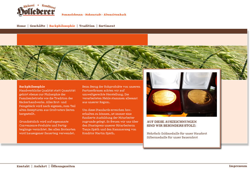 wurde der Webauftritt entwickelt (siehe Getreideähre als Hauptbildmotiv, zudem