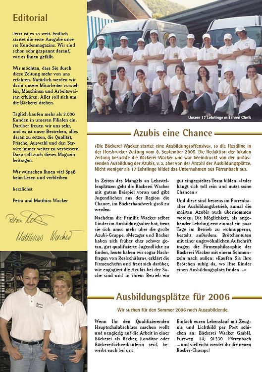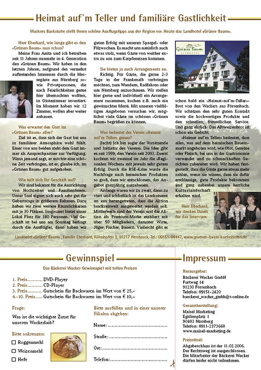 Maisel Marketing realisiert für die Bäckerei Wacker GmbH das Kundenmagazin „Wackers